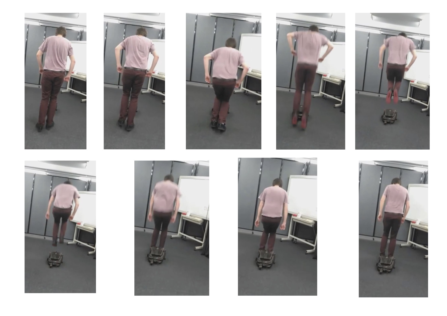 - 15 start shift the weight to the front leg and lifting the back leg, knee and foot with toes pushing on the ground, swing the arms, start straightening the torso with the head forward