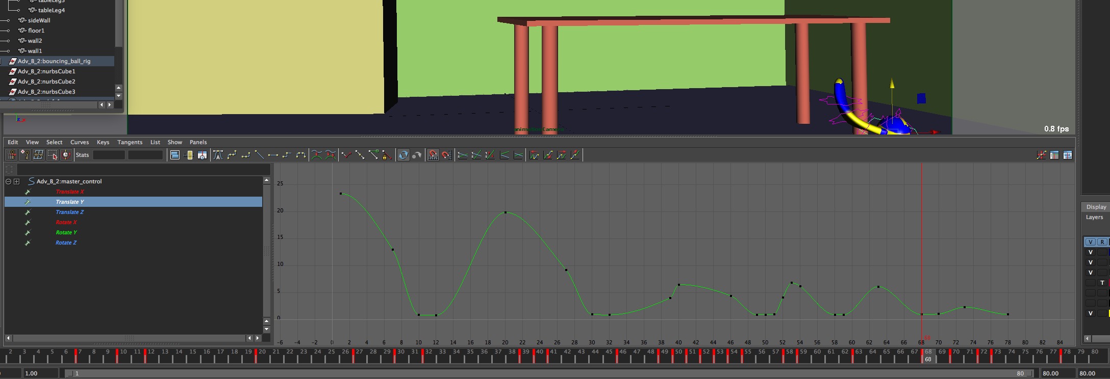 Looking at it I would have liked to have more rotation in the balls movements and not so jumpy at the end after it hits the table the final time. More understanding of the curves in the Graph Editor and how they relate to the balls movements would help. The table also needs more follow through after the final hit from the ball.