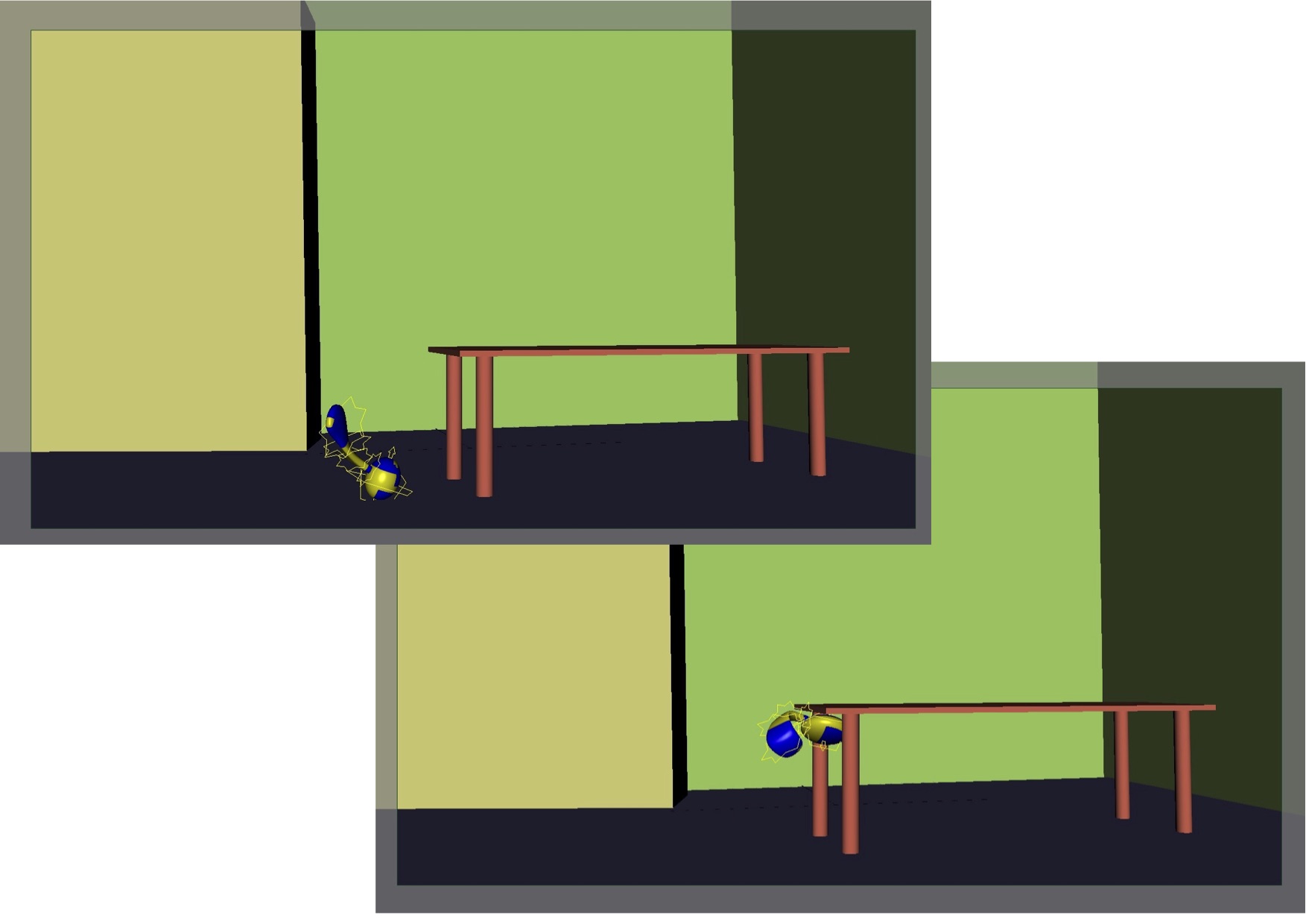 The table moves as a result of the ball hitting it and for the bounce when the ball come out from under the table I have taken it higher, above the table.
