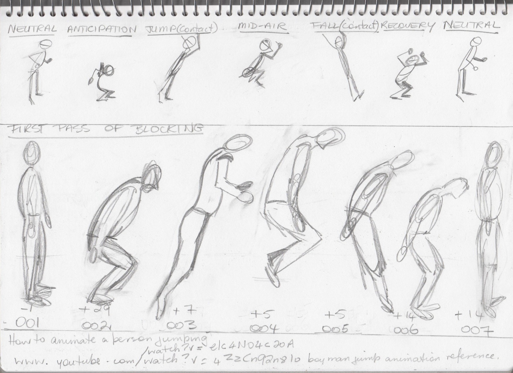 - repeat the next set of poses with the other arm and leg to correspond to the first set with frame 35 corresponding to frame 15, 40 matching 20