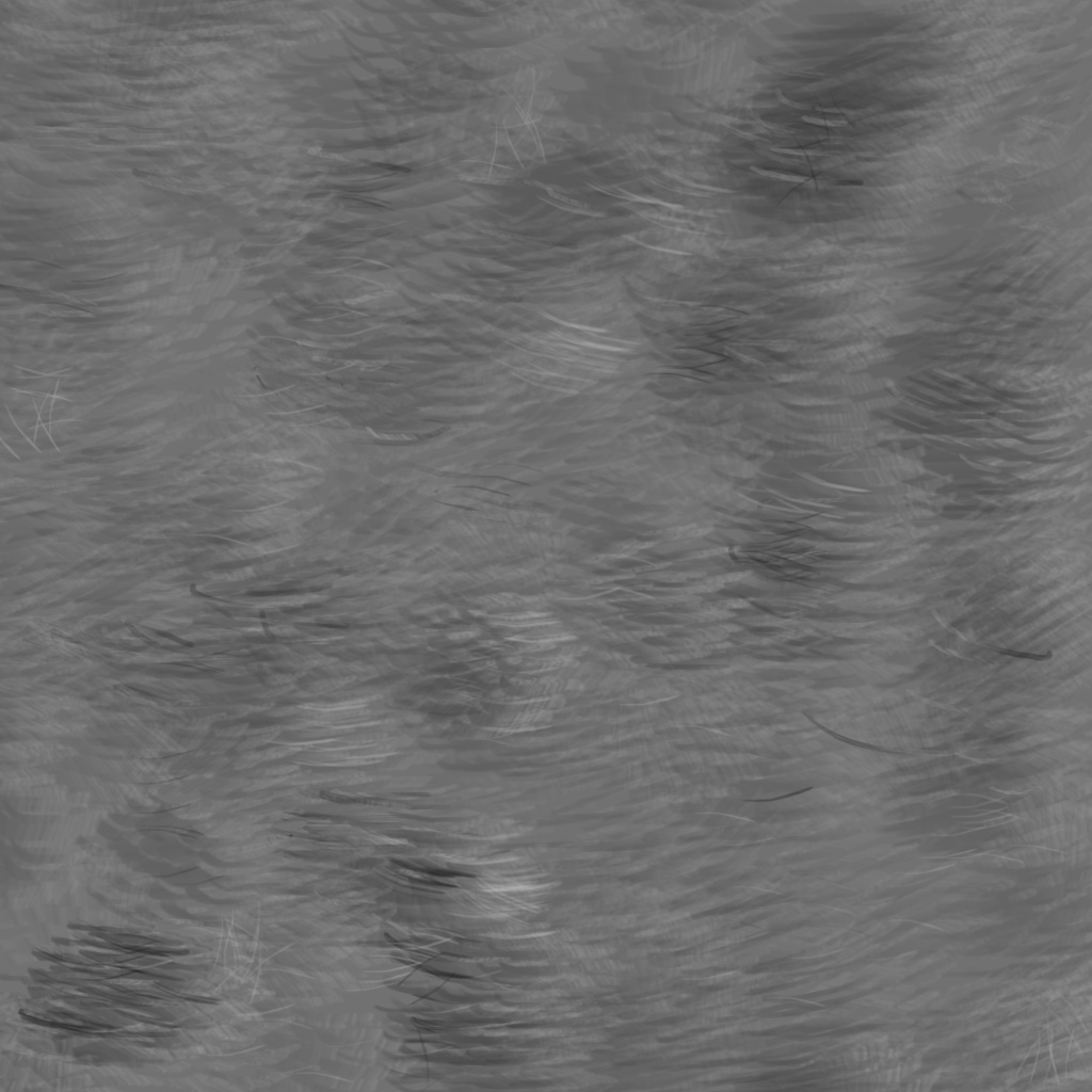 The underpainting textured layer of the fur was done with more of a blunt, stiff brush as opposed to the softer brushes used for the base layer of the timber and stone surfaces. Building the mid layers with a dual brush, the contrasting lines for the fur helped define the surface texture. By adjusting the brush tip and using variations of black and white values with the foreground and background colours in Colour Dynamics it started giving the illusion of depth. Adjusting the opacity, flow direction, size, shape dynamics and angle jitter direction for a row of hairs and having the brush stroke follow the direction of the fur suggested shadows and deeper textures.