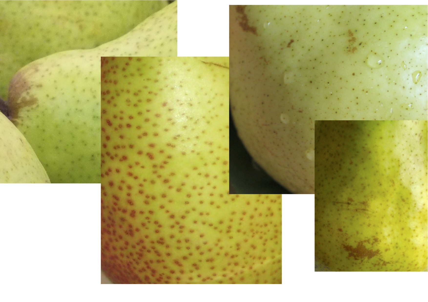 I created a variety of colours, shapes and types of dots for the pear on different layers using both custom made and stock stamps, combining this with projections.