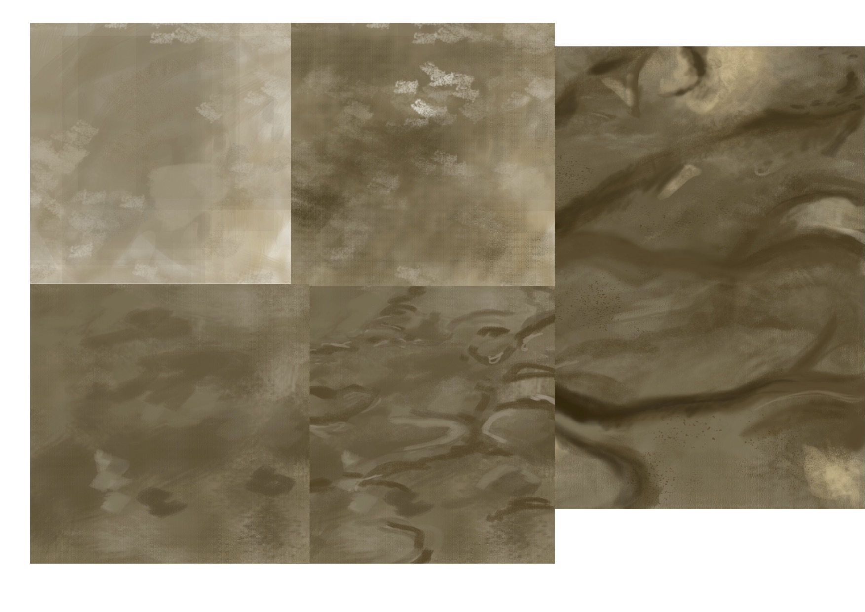 The rough stone was built in a similar way to the smooth stone using different strokes and blocks of colour. Again starting with a general base layer of broad colour then working in a more detailed middle layers, adding variation while keeping the stokes soft and adding a little texture without saturating the colours. Starting to include the outline of some of the rough surface shapes with more variations of colour, brush size and the brushes options to introducing more variety than in the mid tone layer. I think there was possibly not enough areas of contrast with the solid colour in the mid tone layers to creating the detailed surface, like cracks and edges and to building up the focus areas. I used scattering more and started to develop areas leading to finer details, looking more at the textures the brushes were creating. I needed to look more at the areas of stronger contrasts, the opacity and the direction of the light with lighter and darker toned areas of the stone that were catching the light and shadows.