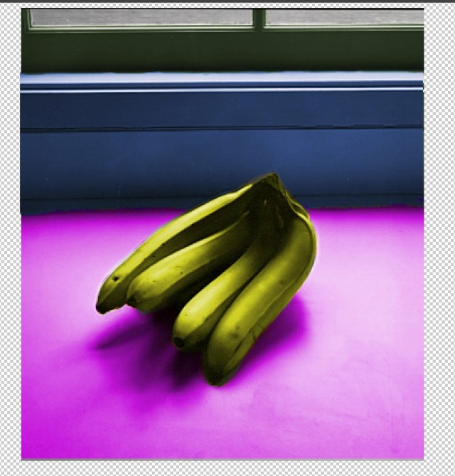 For the banana I use stencils to create the surface colour and textures. The stencils project the image onto the model’s surface, including the colour .