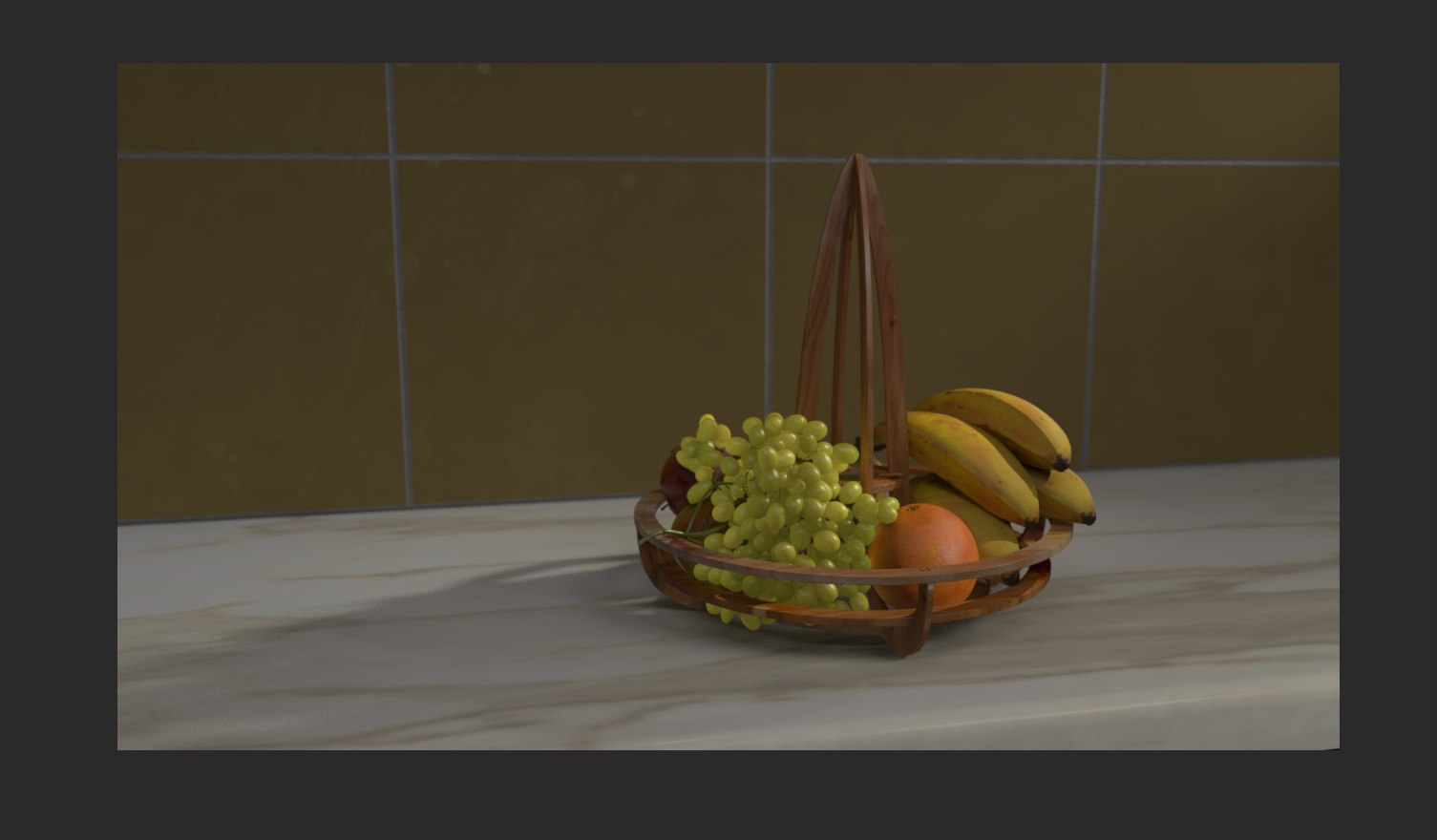 With the apple I have created some procedural textures by using noise and fractal nodes. It is probably not the apple you would purchase at the fruit shop, I like the changes in colour to help show some depth to the shape. I can see how the apple’s shadow shows on the different sides of the banana behind it.