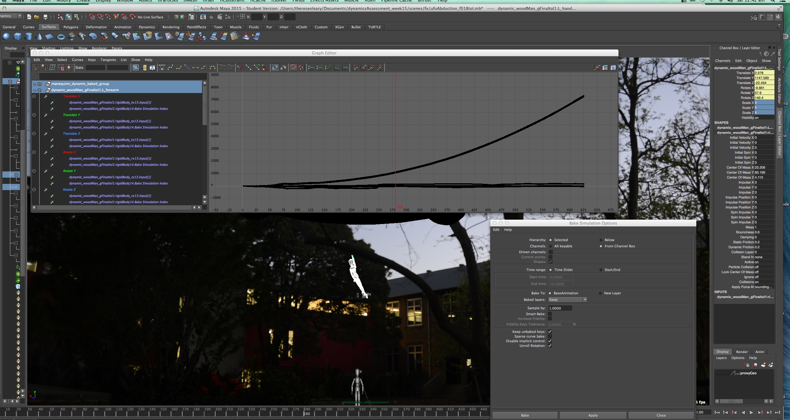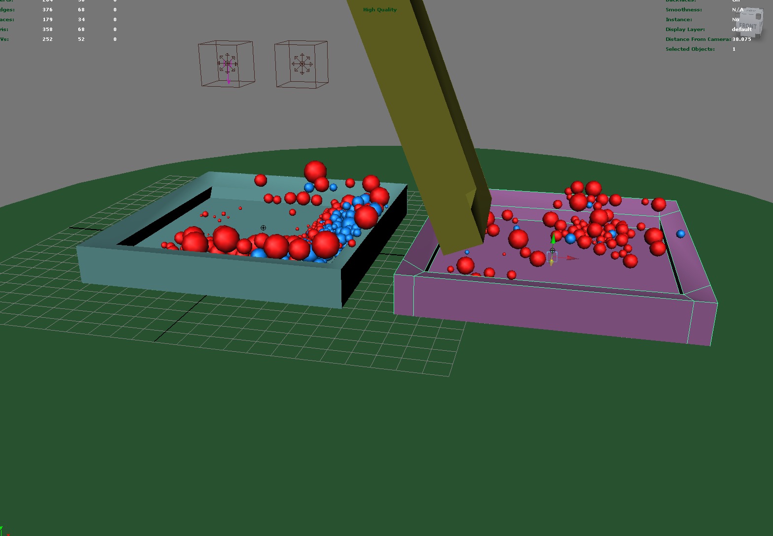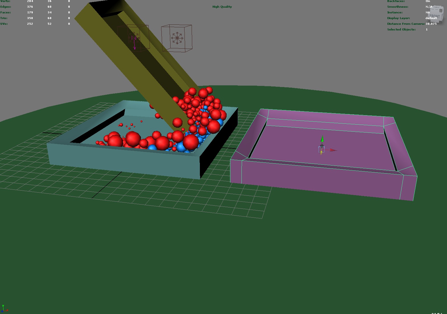 Dynamics is the complex physical mechanism that determines how objects move to simulate real-world forces using the rules of physics. Simulating the complex motion of natural forces in animation and effects by creating an environment with elements that react to the forces applied (fields, expressions, goals etc) creating effects with motion such as fireworks, lightning, shatter, smoke, rain, fire, colliding objects, curve flow, surface flow etc. This includes rigid bodies, soft bodies, particles, dynamic constraints and rendering. Rigid bodies can be active or passive controlling how the bodies collide and react with each other. Active objects typically fall, move, spin and collide with passive objects such as a ball falling to the floor.