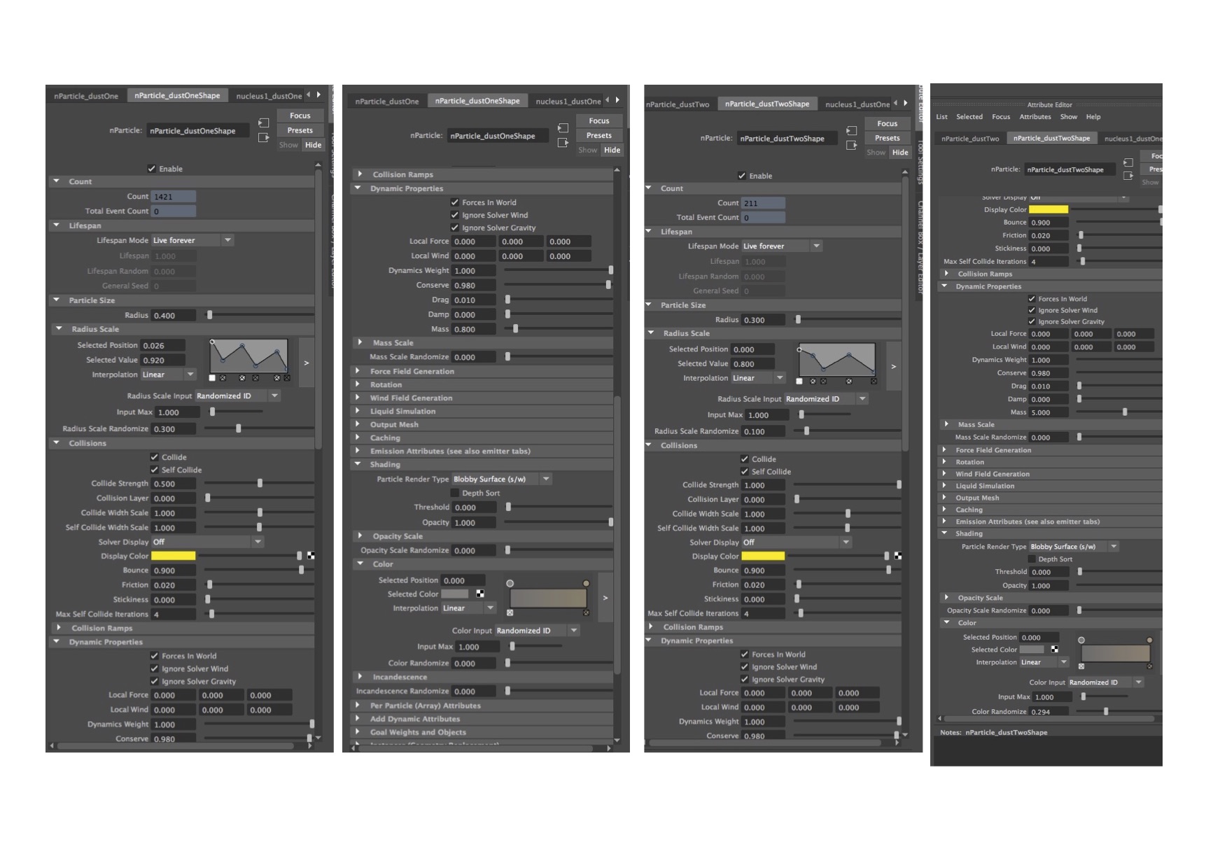- Resilience: controls how much rebound occurs in the particle collision, can use negative numbers