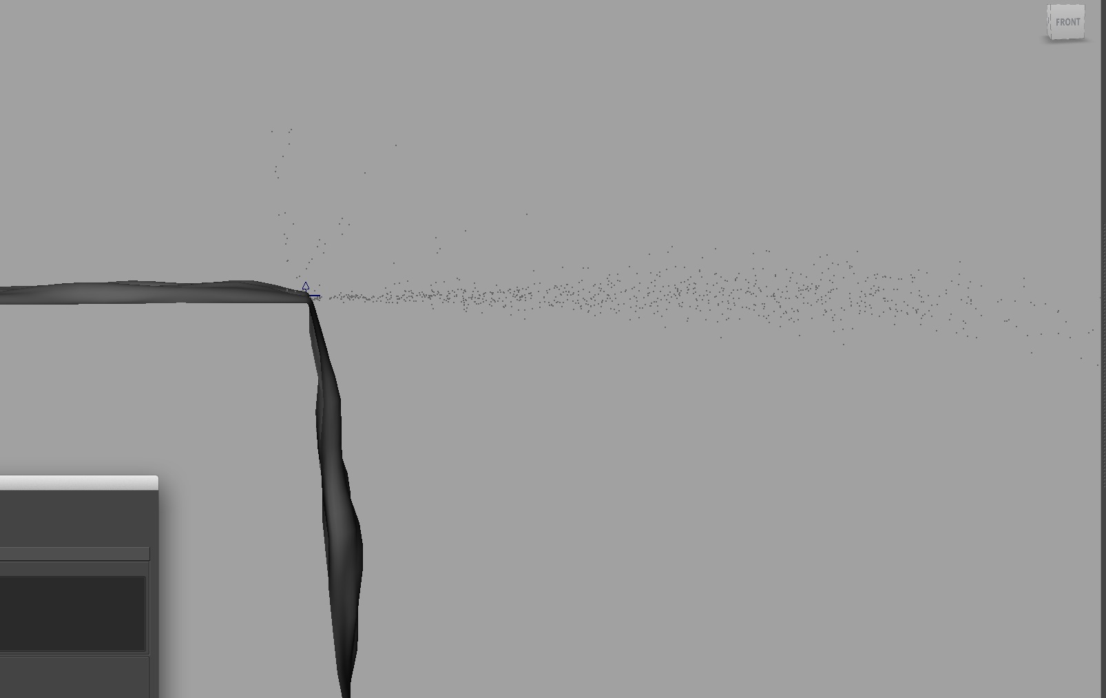 In the drag field I have set the magnitude to 2 as larger values cause the particles to not move over the edge at all or very slowly and it does not look natural. I used 2 and with Attenuation turned off the particles are falling straight down and I prefer some spraying type behaviour to be happening and have set this to 2 for now. I have left the Speed Attenuation at zero.