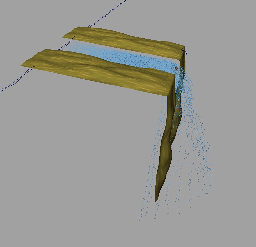 showing where the multiStreaks are going above and below the geometry for the river bed and the falling motion could look more natural