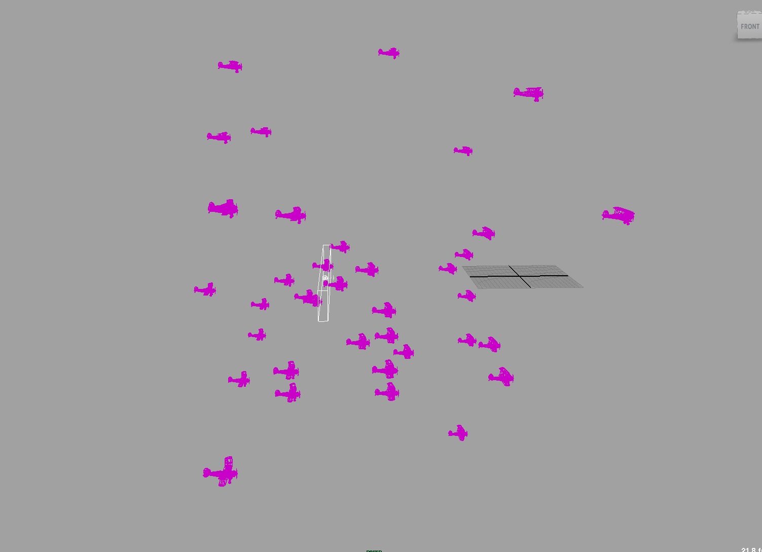 – moved the emitter and rotated the original 90 in Y for the planes to point in the direction of the camera, still not flying in the right direction. Back to the drawing board. I rotated the original and redid the above and they are now pointing towards the camera.