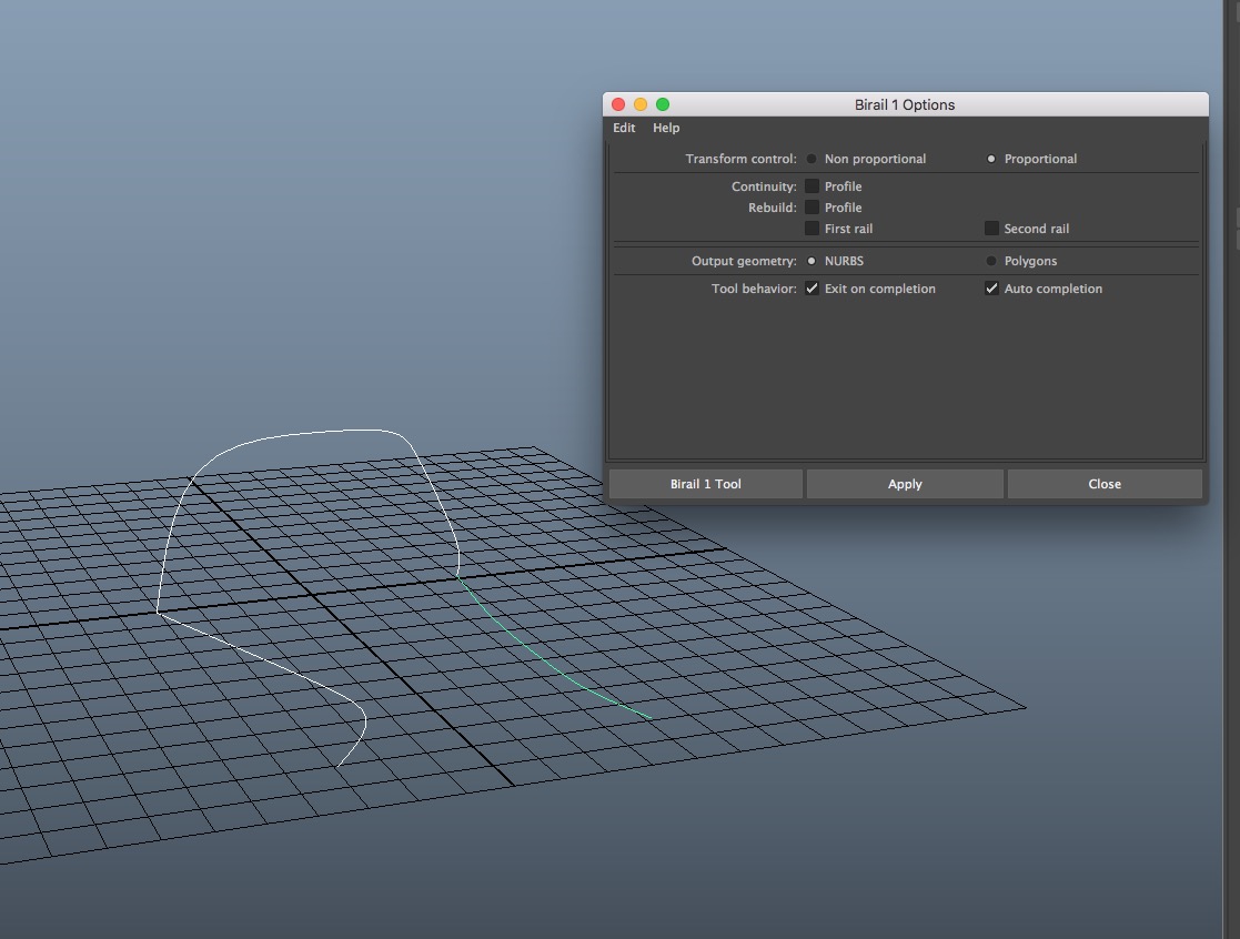 Creating the brail surface. First selecting the profile curve, then the first and second rail curves.