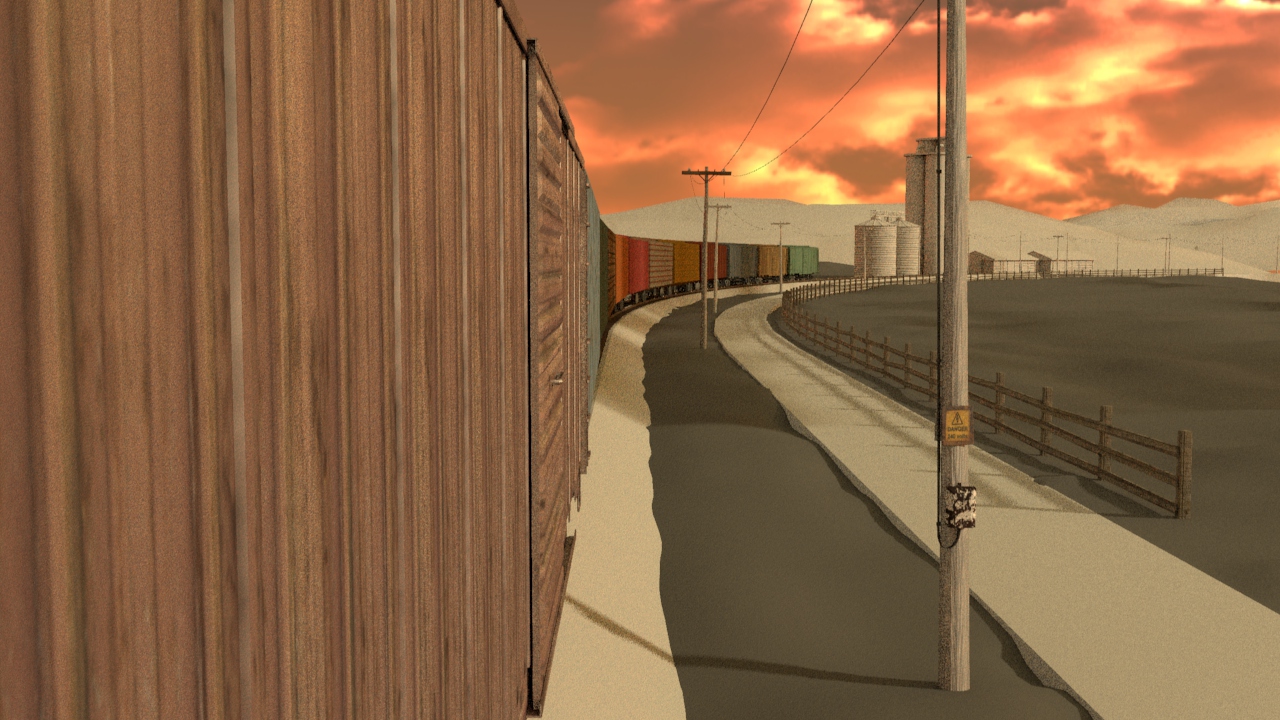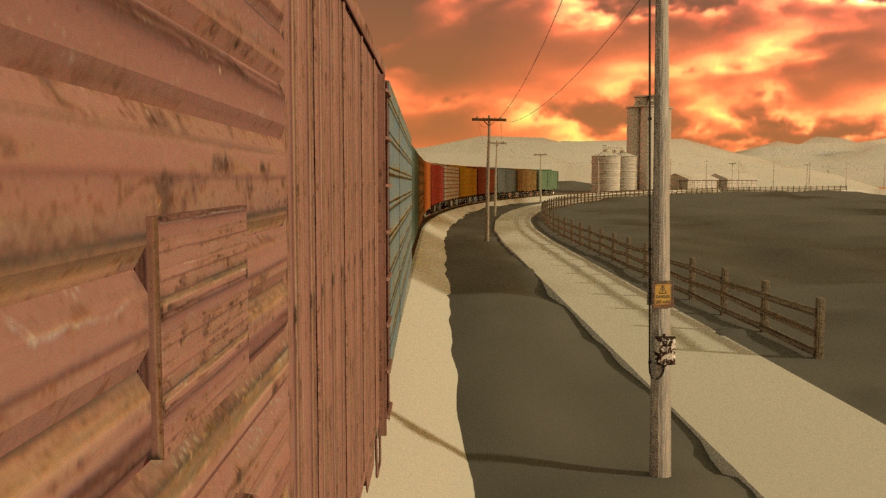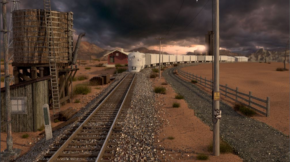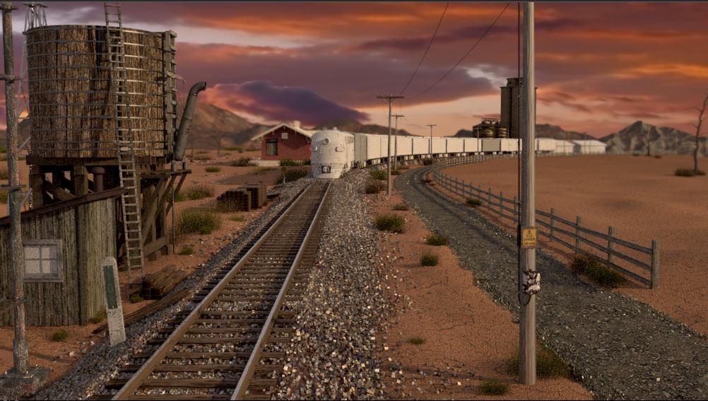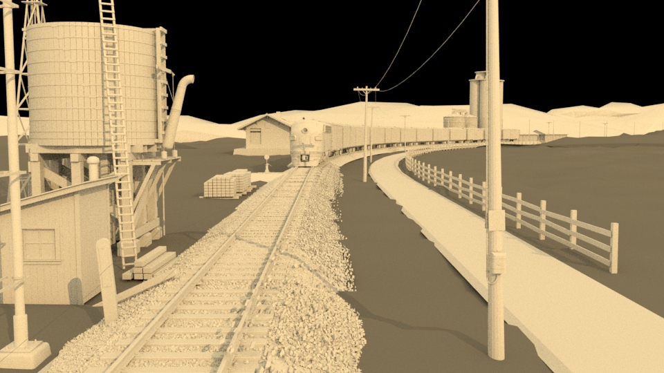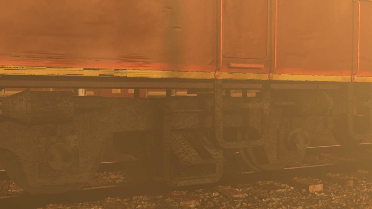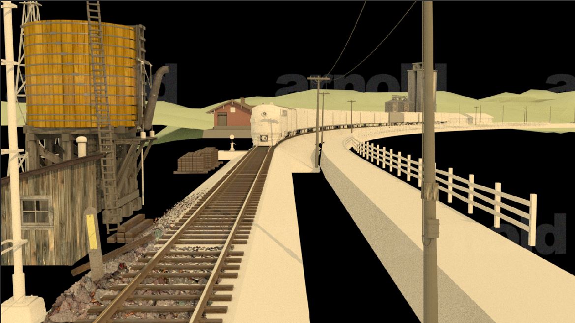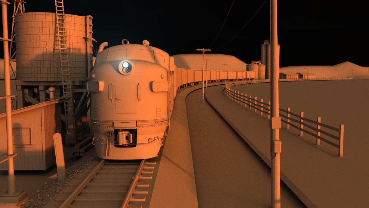 Then next shot is shot 3, being able to use some of the work done for shot 5 such as main lighting, UVs and textures. Animation of the wheels has been done and working on the lighting for the station depo and lightening flash.