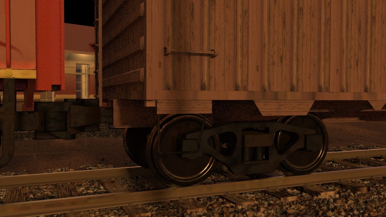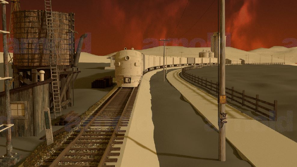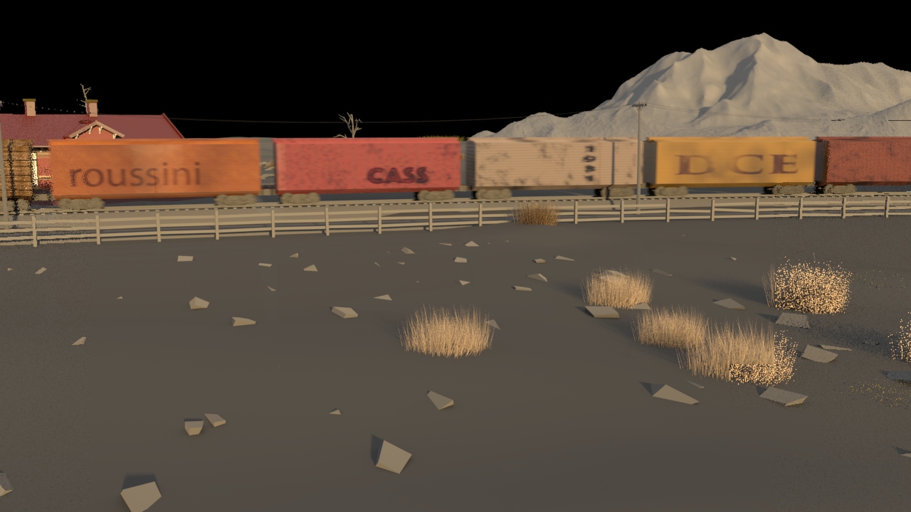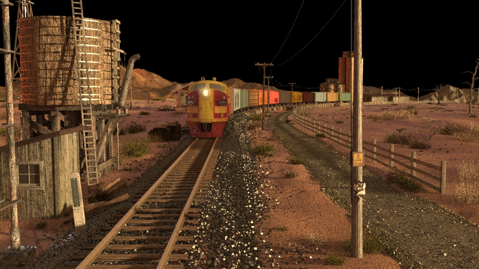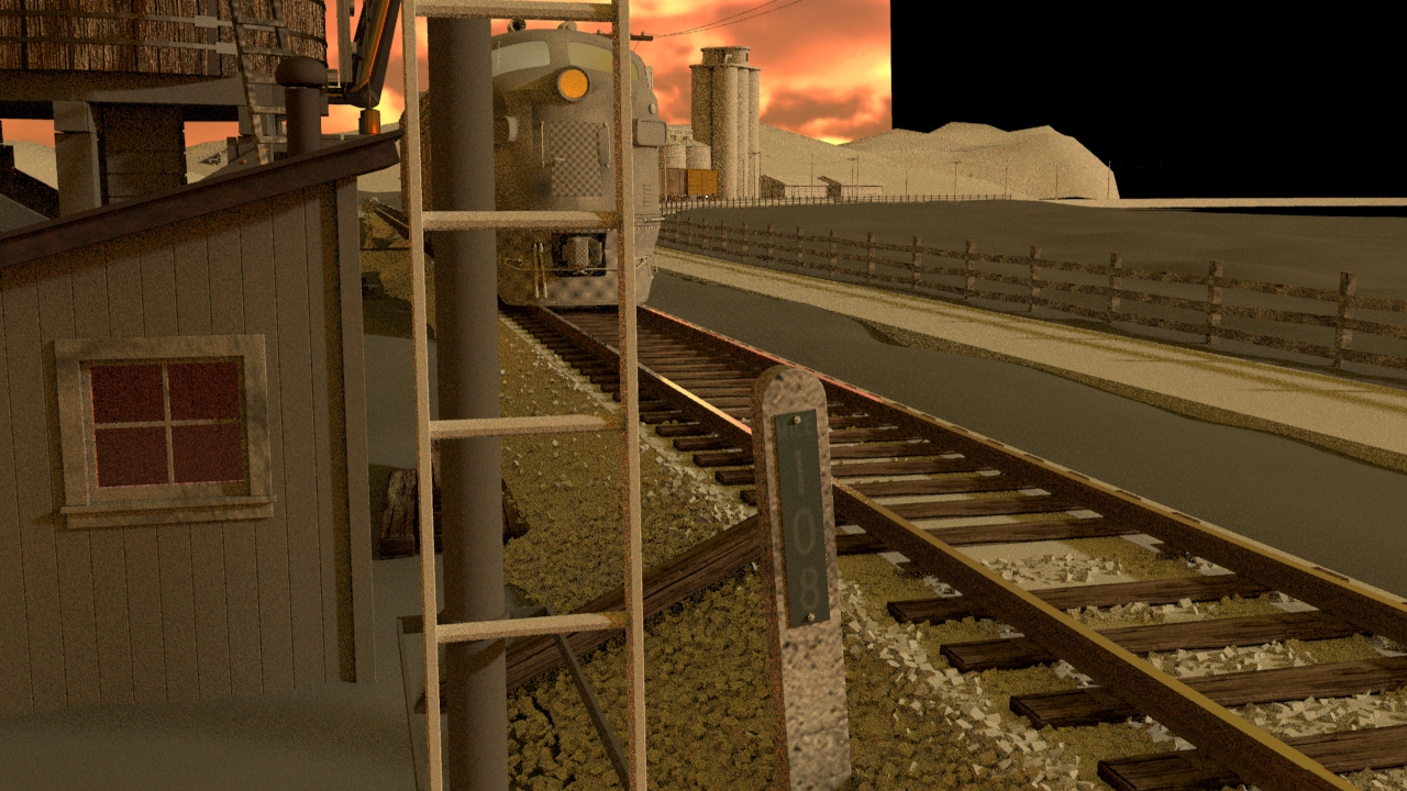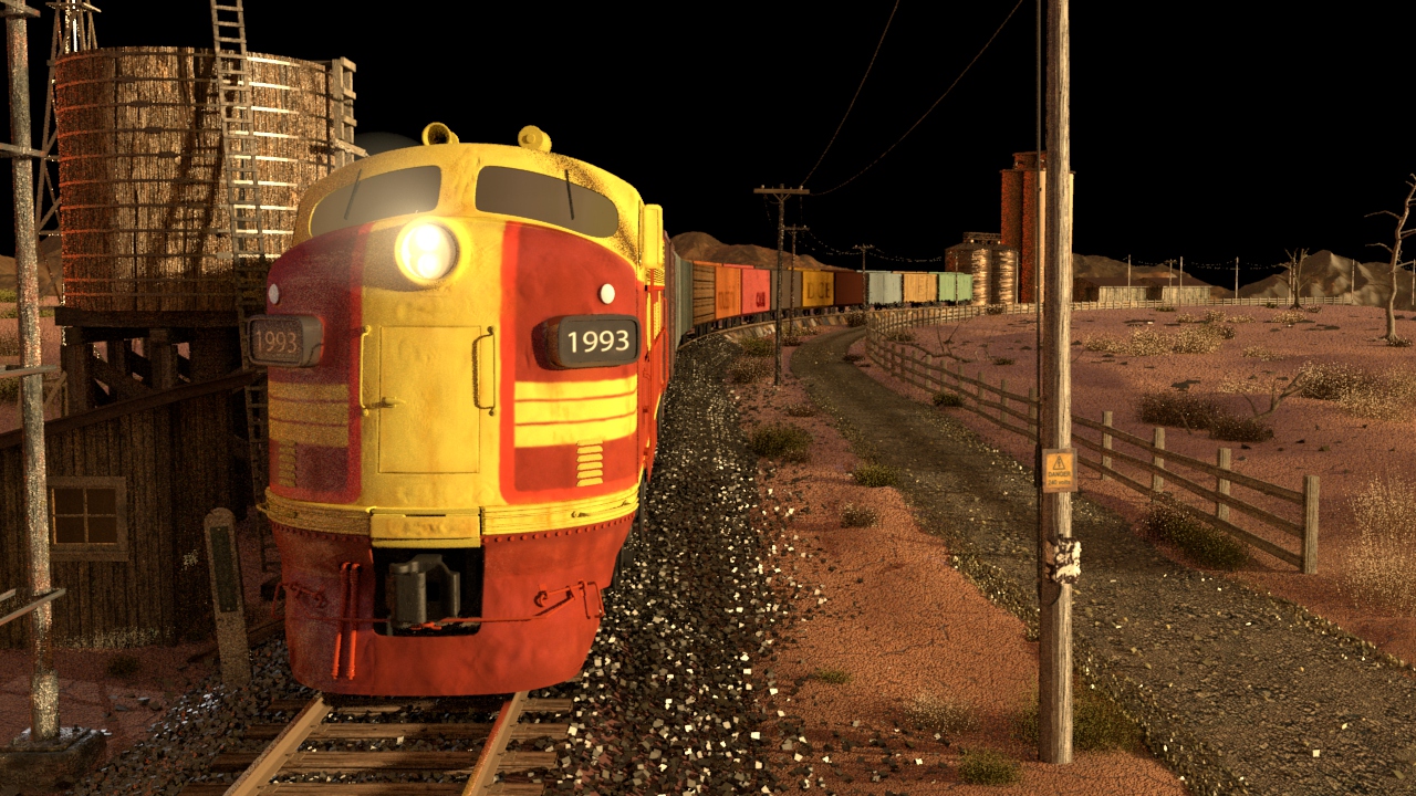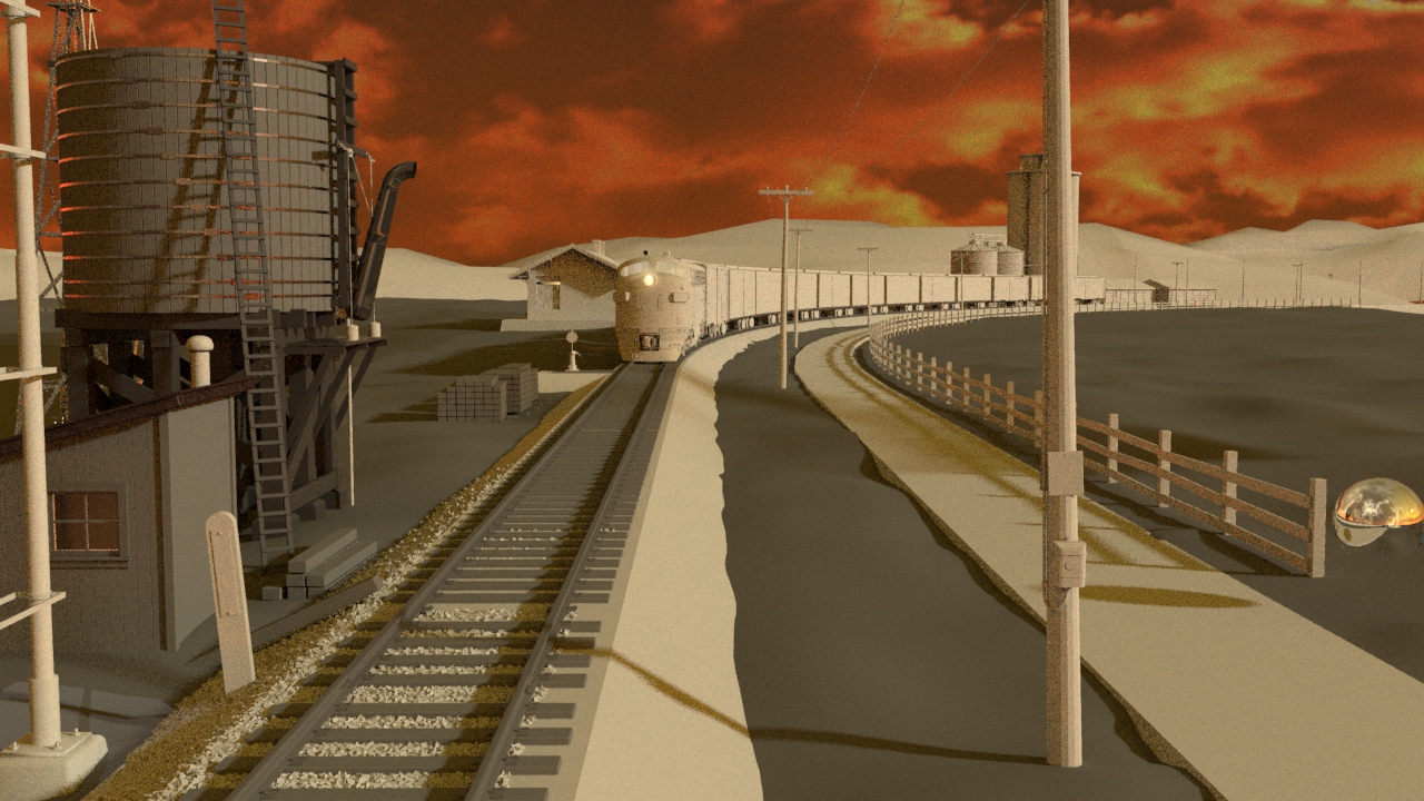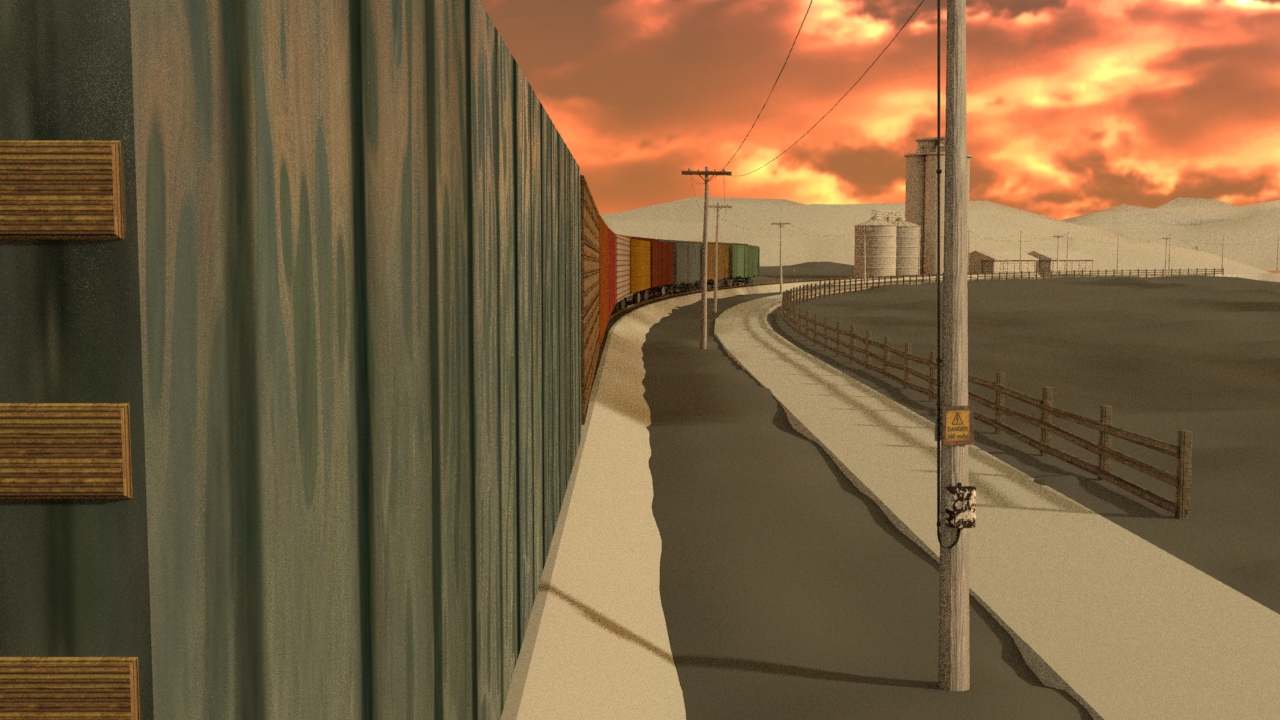 Then next shot is shot 3, being able to use some of the work done for shot 5 such as main lighting, UVs and textures. Animation of the wheels has been done and working on the lighting for the station depo and lightening flash.