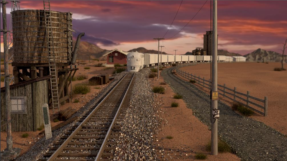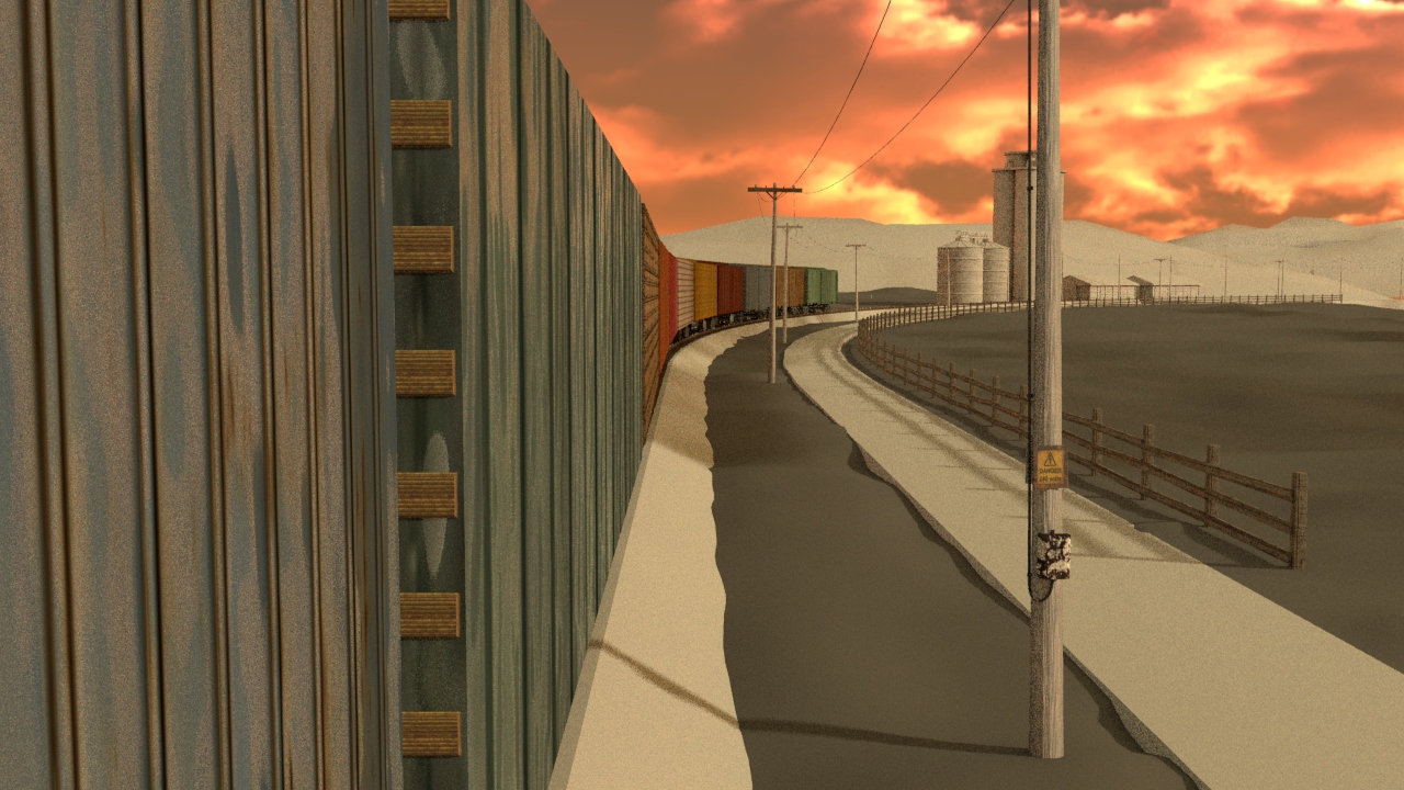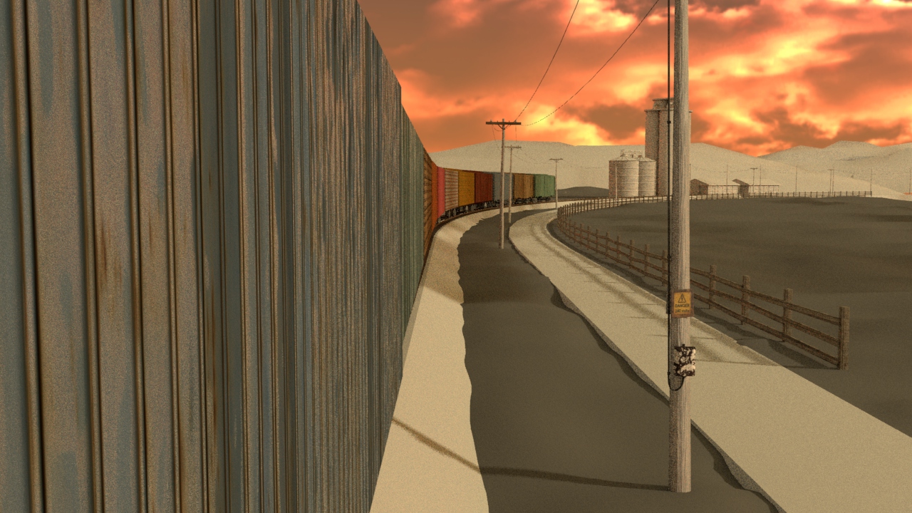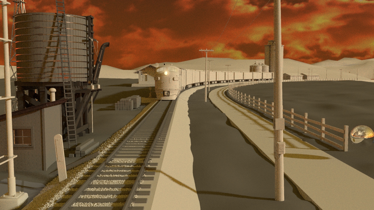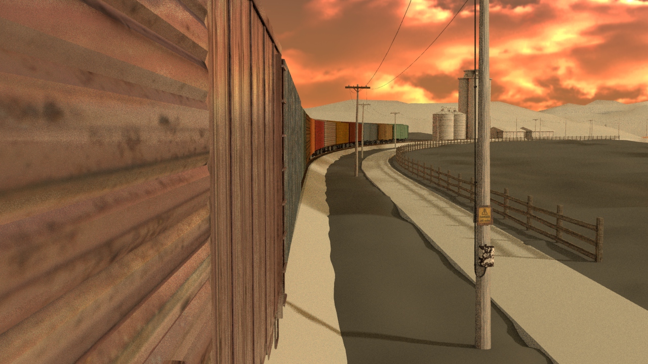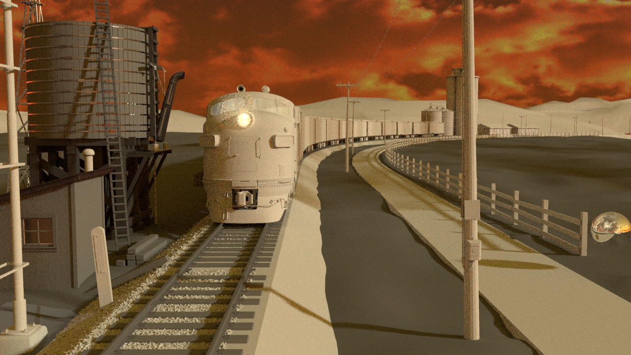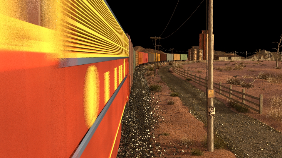 Then next shot is shot 3, being able to use some of the work done for shot 5 such as main lighting, UVs and textures. Animation of the wheels has been done and working on the lighting for the station depo and lightening flash.