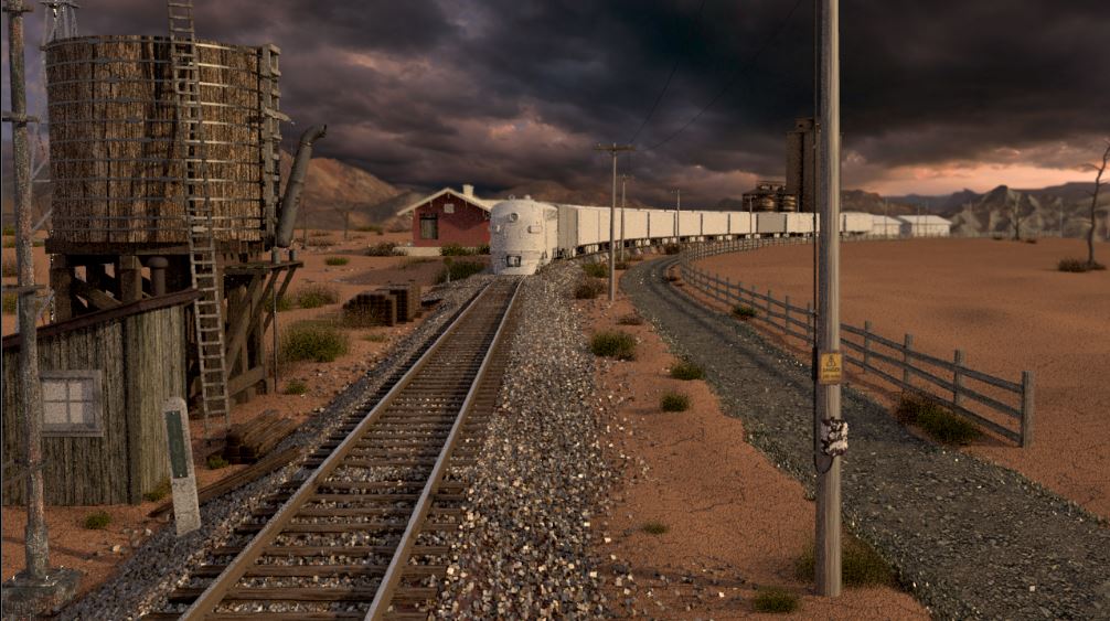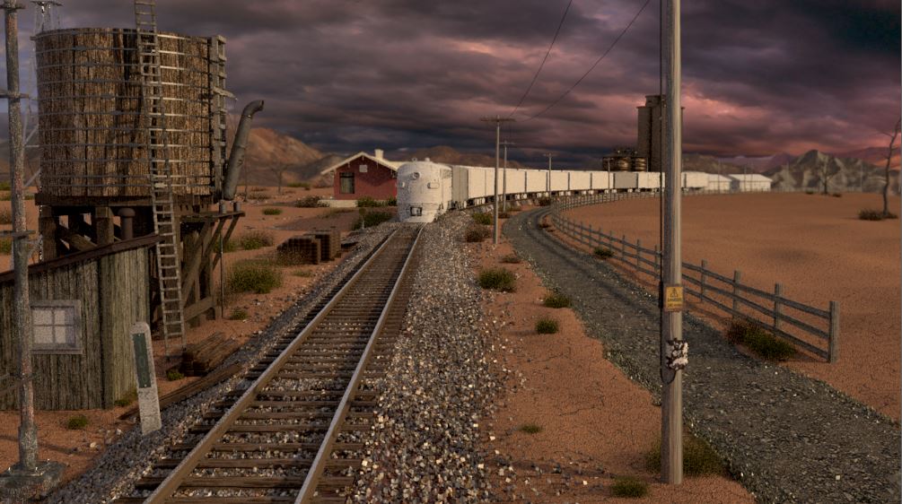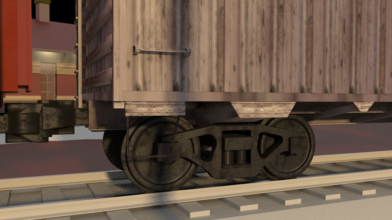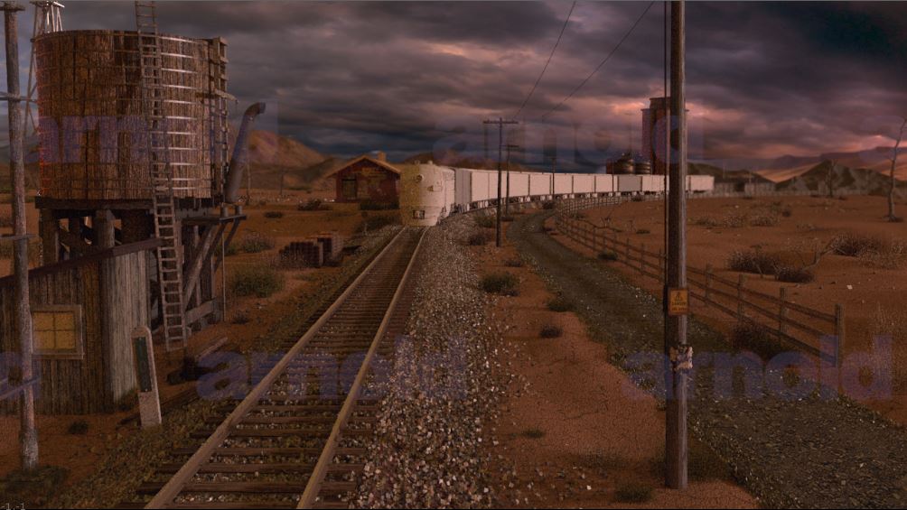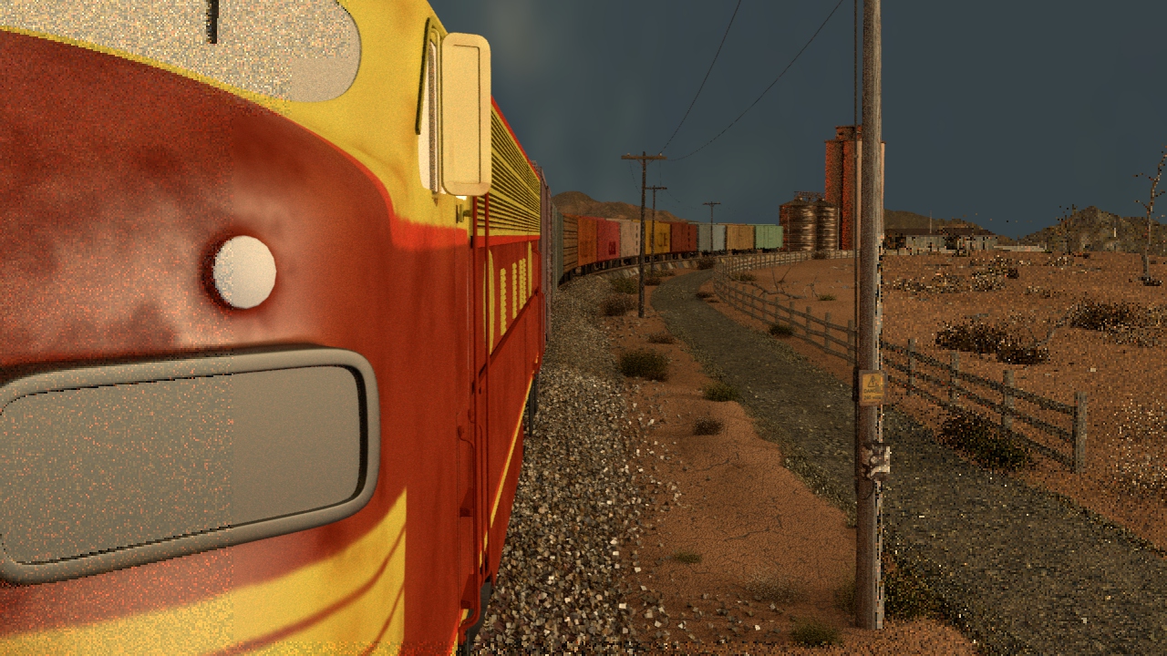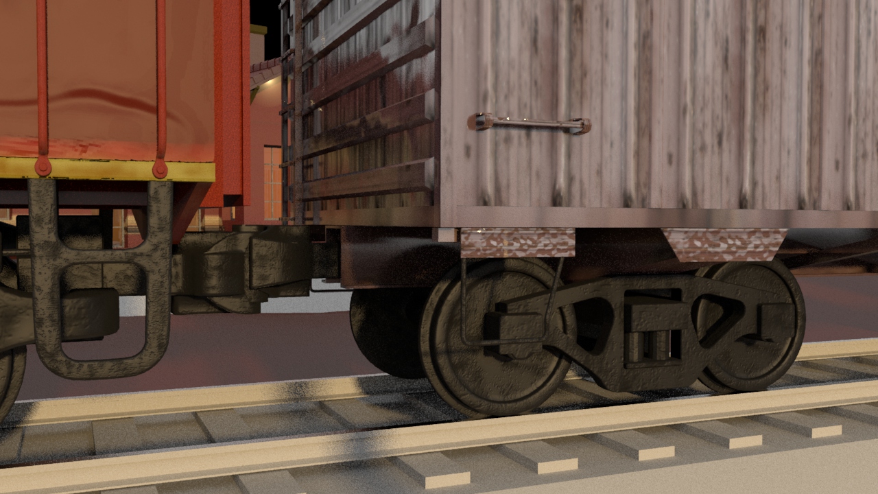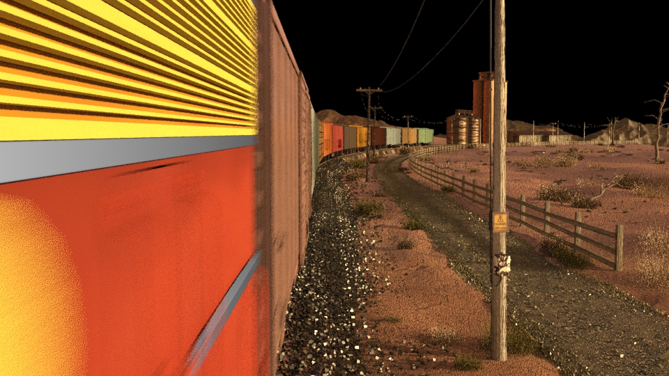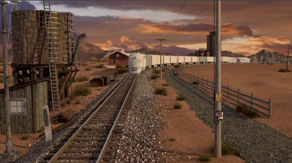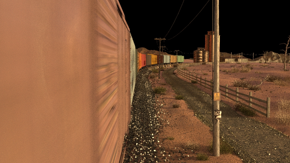 Then next shot is shot 3, being able to use some of the work done for shot 5 such as main lighting, UVs and textures. Animation of the wheels has been done and working on the lighting for the station depo and lightening flash.