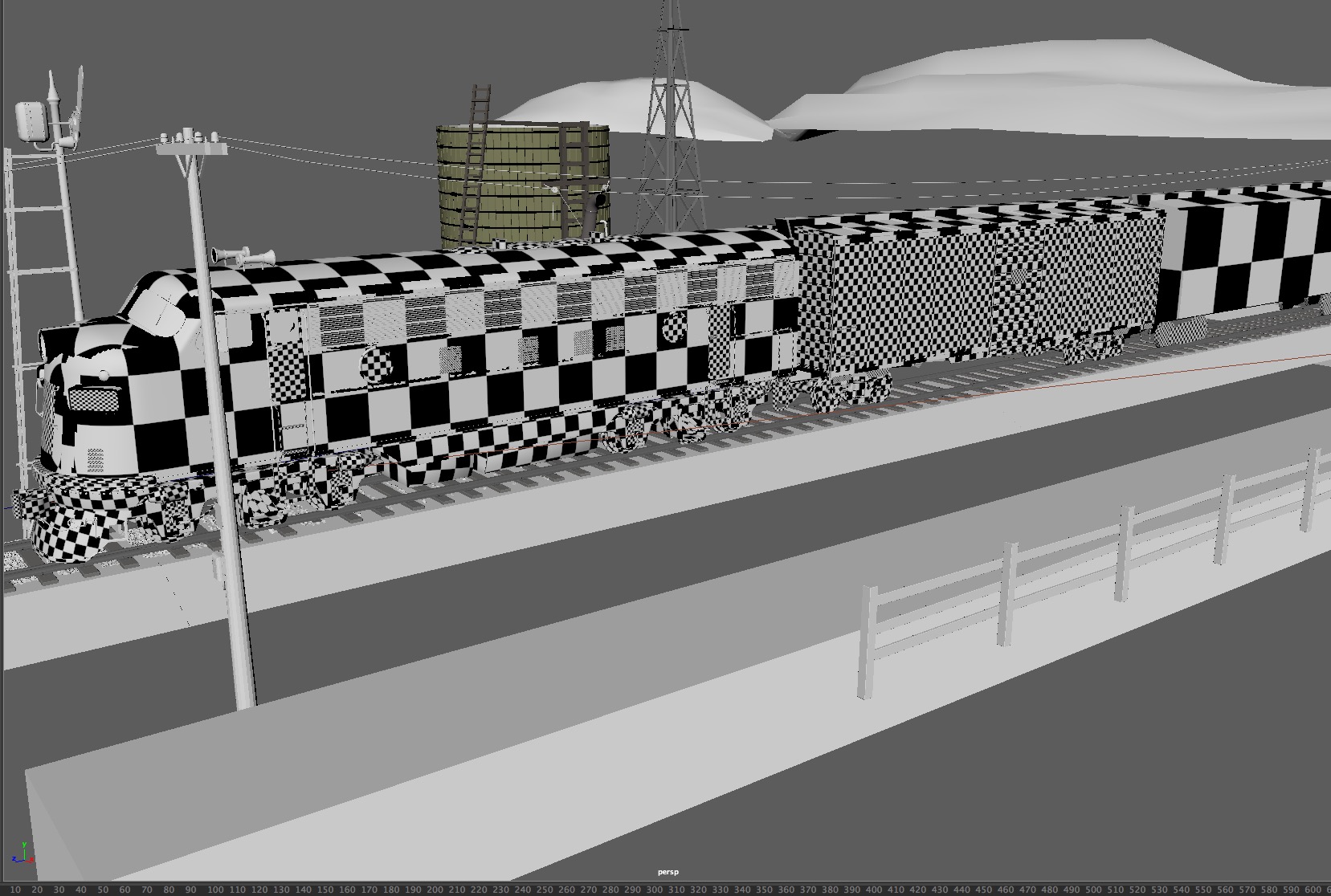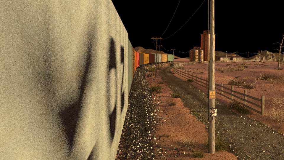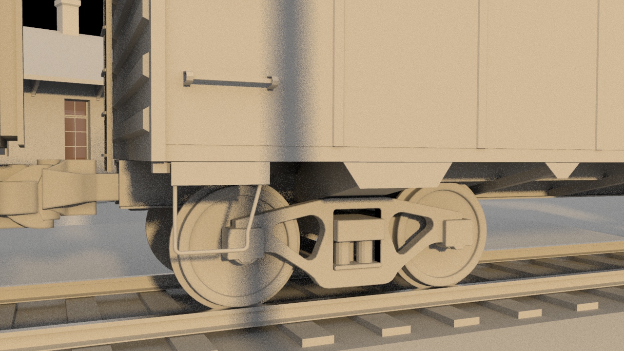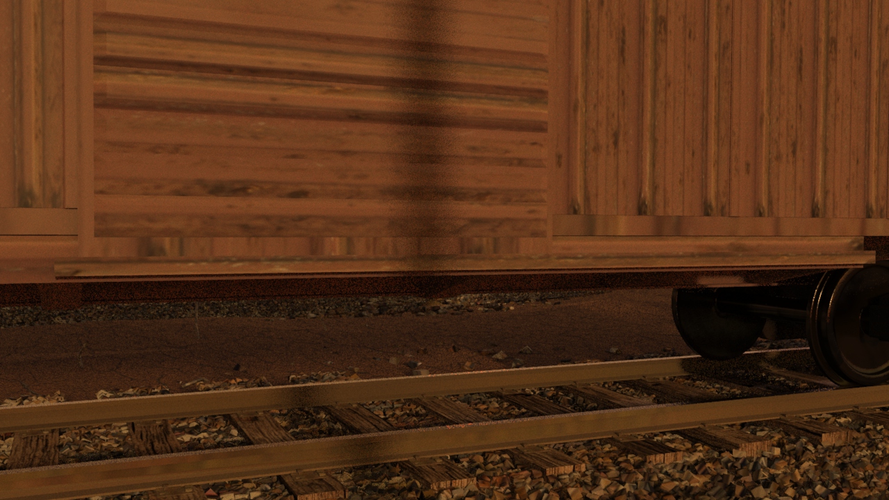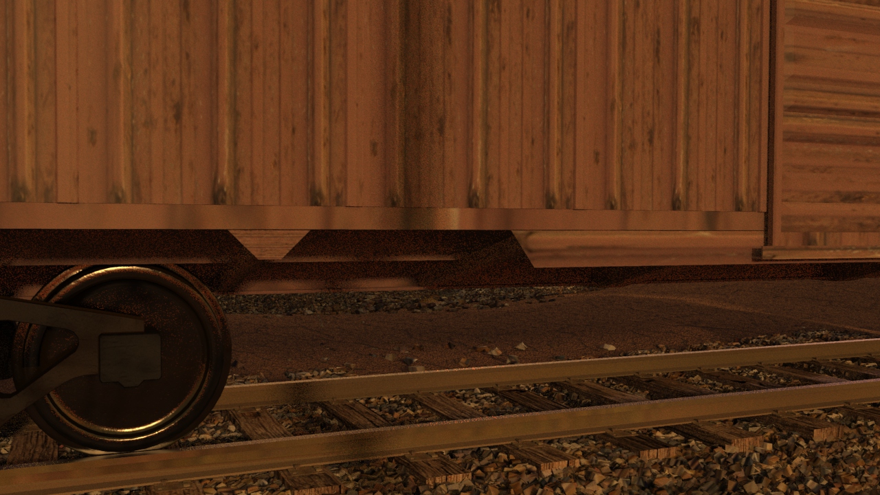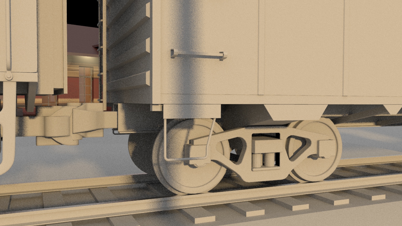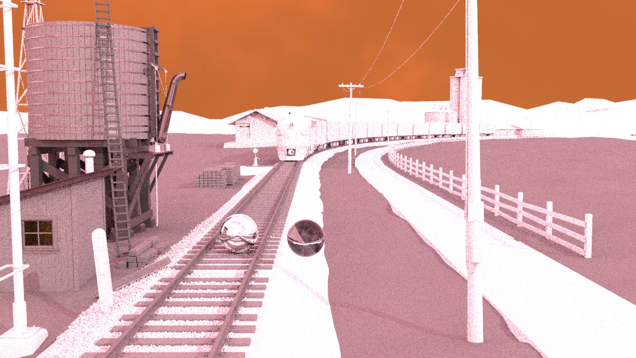 Then next shot is shot 3, being able to use some of the work done for shot 5 such as main lighting, UVs and textures. Animation of the wheels has been done and working on the lighting for the station depo and lightening flash.