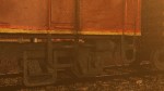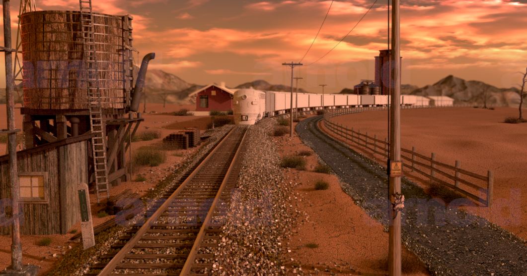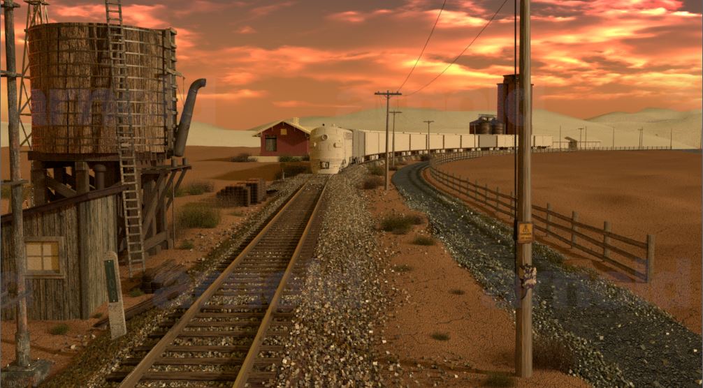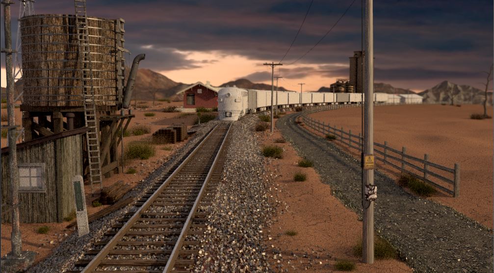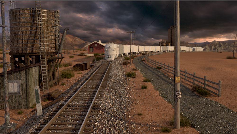 The train is travelling through the Australian outback during a storm, it is windy, lightening strikes. As the train travels to the front of the screen what is going to happen?