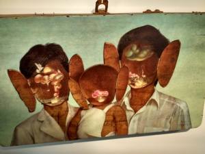 Moffatt’s photographic series Laudanum 1998 and Plantation 2009 are related through the use of old colonial homes as locations for the playing out of fears and desires. The artist’s love of cinema and melodrama is evident, particularly in Laudanum with its references to Murnau’s expressionist 1922 film Nosferatu. Her ongoing play with the photographic medium is beautifully presented through the toned photogravures of Laudanum and the printing and painting on handmade paper in Plantation.