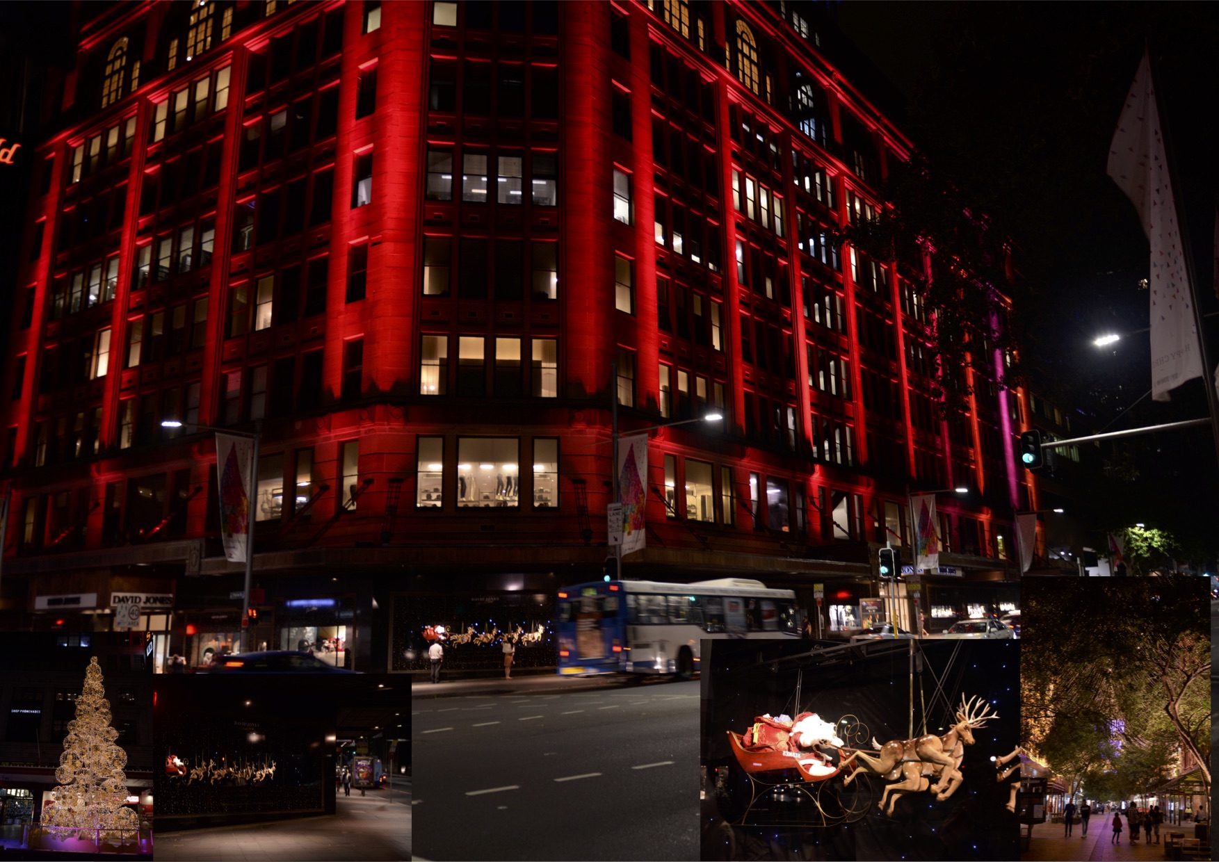 David Jone’s windows, Sydney; Pitt Street Mall, Sydney; Queen Victoria Building, Sydney; Martin Place, Sydney.