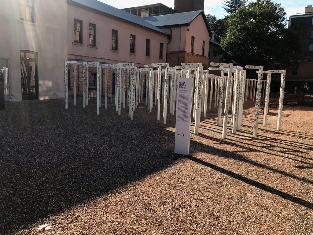 Hall’s latest work, who goes here?, focuses on the stories of 300 individuals from the tens of thousands of convicts, immigrants, asylum inmates and officials who passed through the Hyde Park Barracks between 1819 and 1887 and looks at how place shapes our sense of belonging and identity.