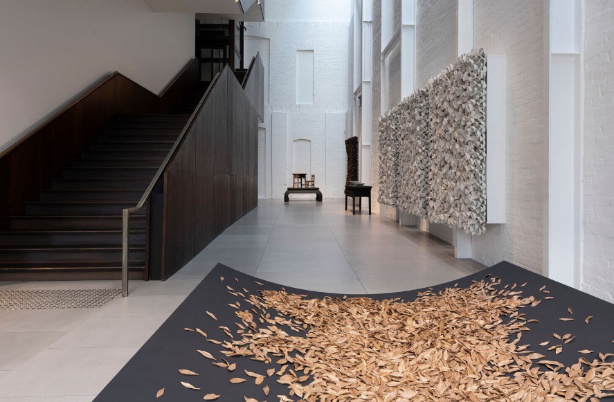 The exhibition features Ottchil which involves forming a lacquer from the sap or ott of rhus trees. Once it is refined to become translucent it is able to be used to create a natural gloss finish on objects.