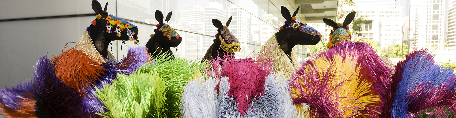 - The vivid colours of the skirt represent the joyful aspects of the spirit in contrast to the black and white bodice which represents the conservative conditions we undergo in the fickle dictates of fashion.