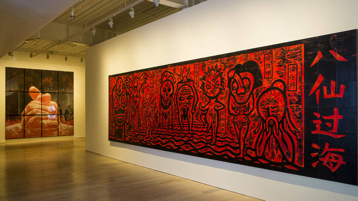 - Second Prize Peta Hinton ‘Seep’ Acrylic on Paper, Mounted on Scroll: Calico, Paper, Wood 103(H) x 91(W)cm