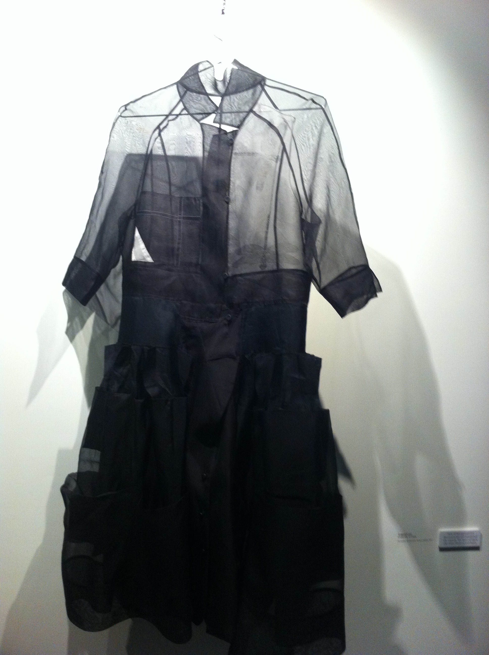 - The vivid colours of the skirt represent the joyful aspects of the spirit in contrast to the black and white bodice which represents the conservative conditions we undergo in the fickle dictates of fashion.