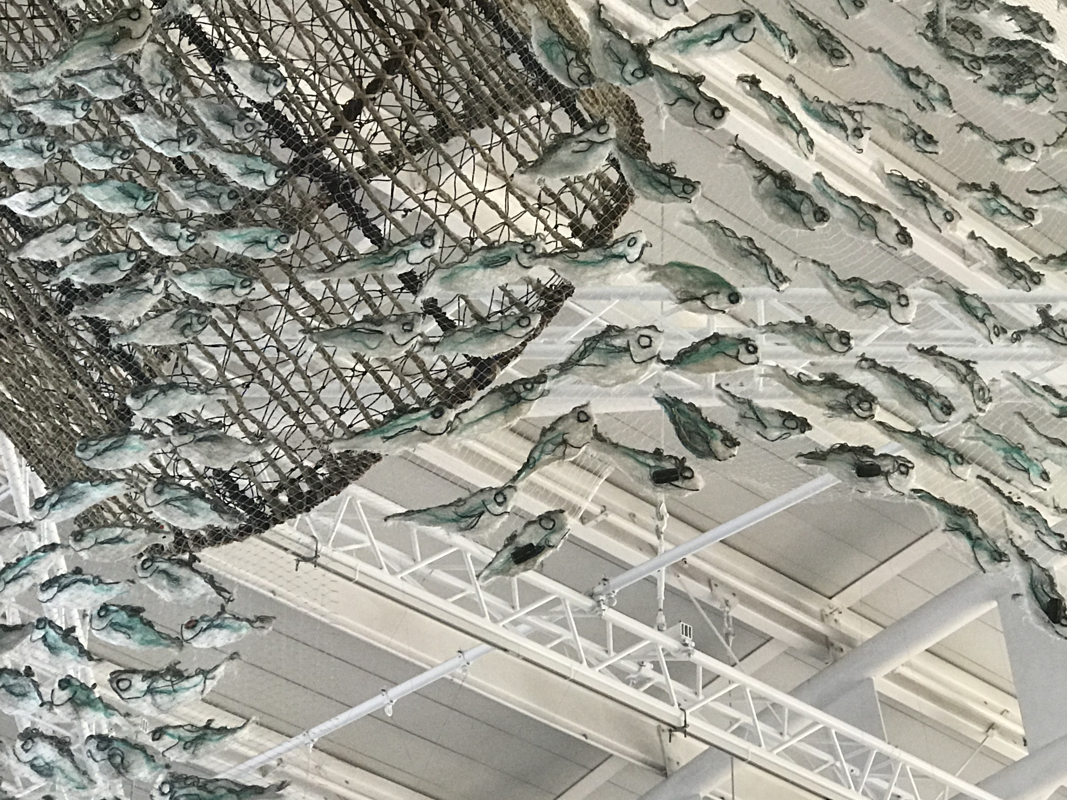- Second Prize Peta Hinton ‘Seep’ Acrylic on Paper, Mounted on Scroll: Calico, Paper, Wood 103(H) x 91(W)cm